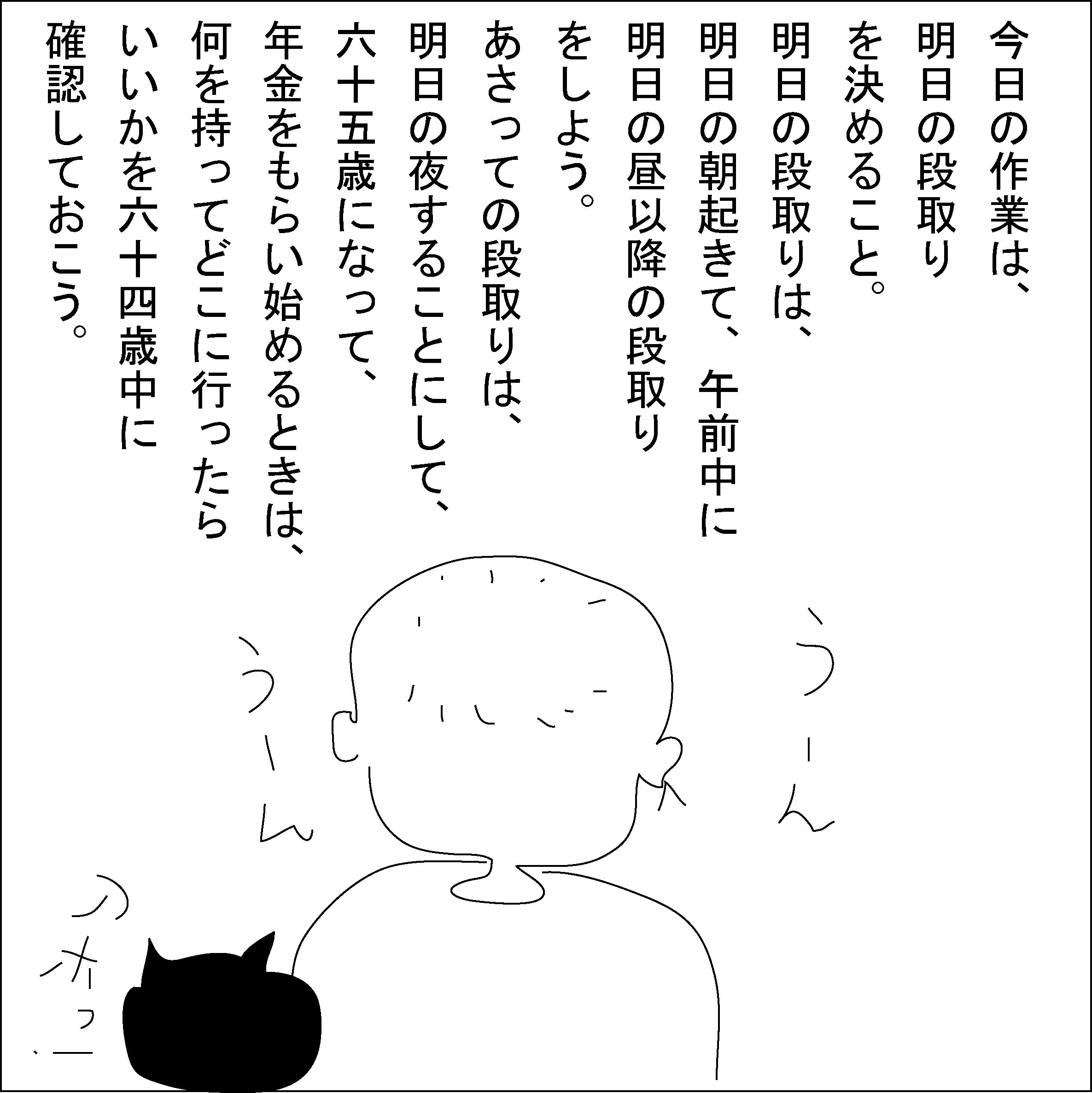 確かに大切なのですが、何か先のことばかり考えて、結果的に今のことがおろそかになっている気がします。行き当たりばったりで済むことはそうしたほうがいいかもしれません。