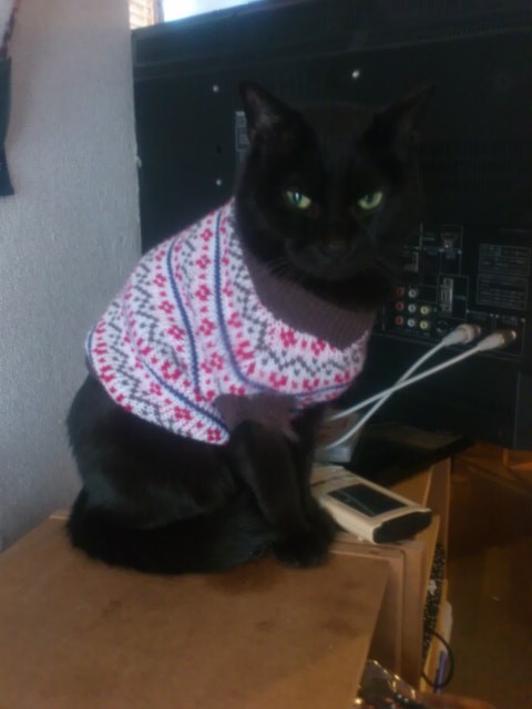今年はもう着る事もないかと思っていたセーターを着せると動きはやっぱり鈍くなりますが、まんざらでもなさそうです。