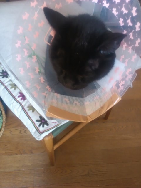 ふと見ると傷なめ保護用につけていたのエリザベスが裂けていました。