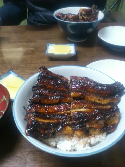 お客さんは私たち含めて4人でしたが、換気が悪くて4人分焼くだけで店の中は煙だらけ、私たちはウナギの煙の燻製になりました。