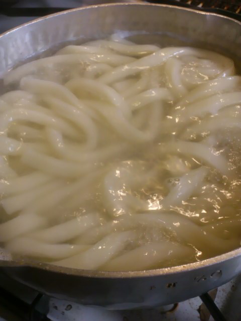 伊勢うどんは10分以上ゆでると、くたくたのふにゃふにゃになります。これがうまいと言ってM2号は生卵をどんぶりに入れてかき混ぜ、熱々のうどんと混ぜておつゆをかけるカルボナーラ風伊勢うどんがお好きなようです。