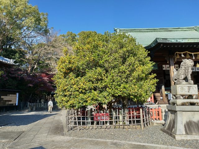 千種区本山にある城山八幡宮には大層立派な橘のご神木があります。