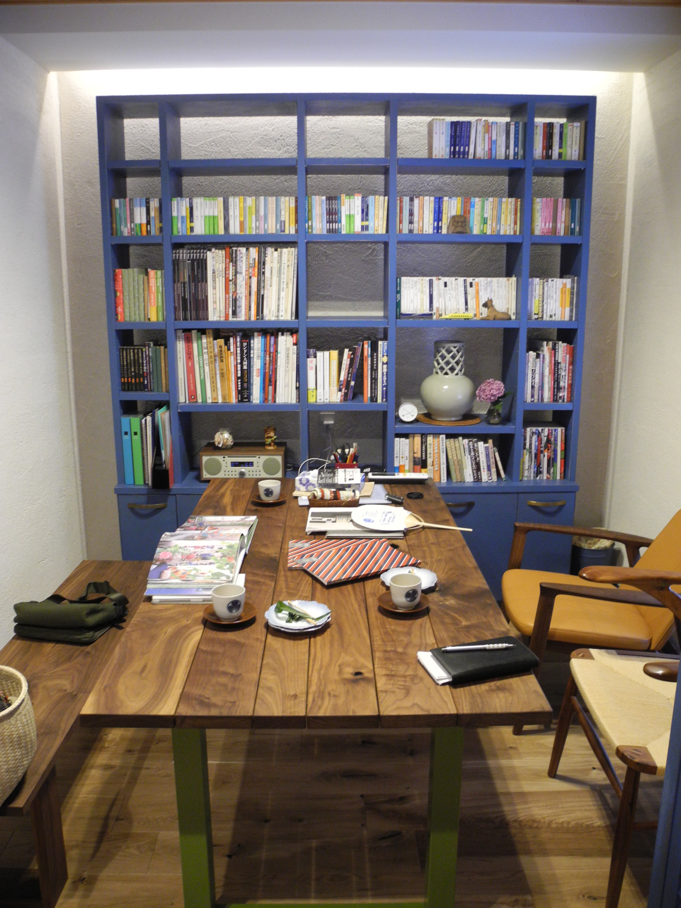仕事でお世話になっているIさんの自宅の部屋の改装のお手伝いをしていました。最近出来上がったのでアップします。写真ではわかりにくい程度ですが青い本箱は”ヴィンテージ感”を出すためにエイジングしてもらいました。