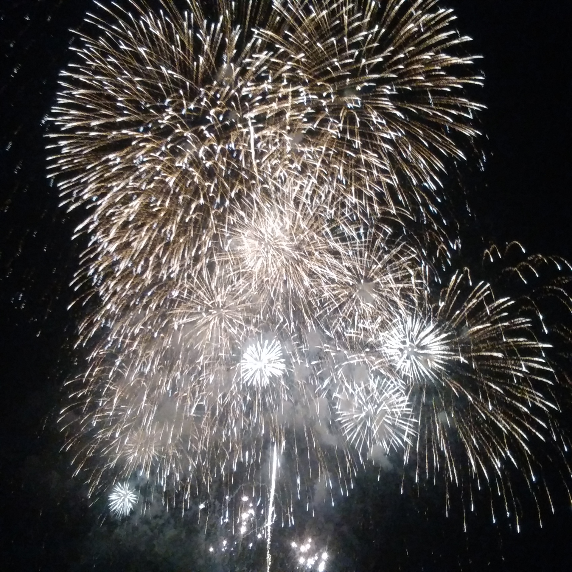 コトブキさんが席があるというのでM2号と花火を見に行ってきました。一時間休む間もなく暑さを忘れさせてもらいました。それにしてもいろいろな花火があって、それがまた近くで迫力ありました。来年も行きたいと思いました。写真では伝わらない、後ろにいたおばちゃんの言ってことや、腹に響く音などいろいろなものがありますがとりあえず写真でふんいきでも・・・・