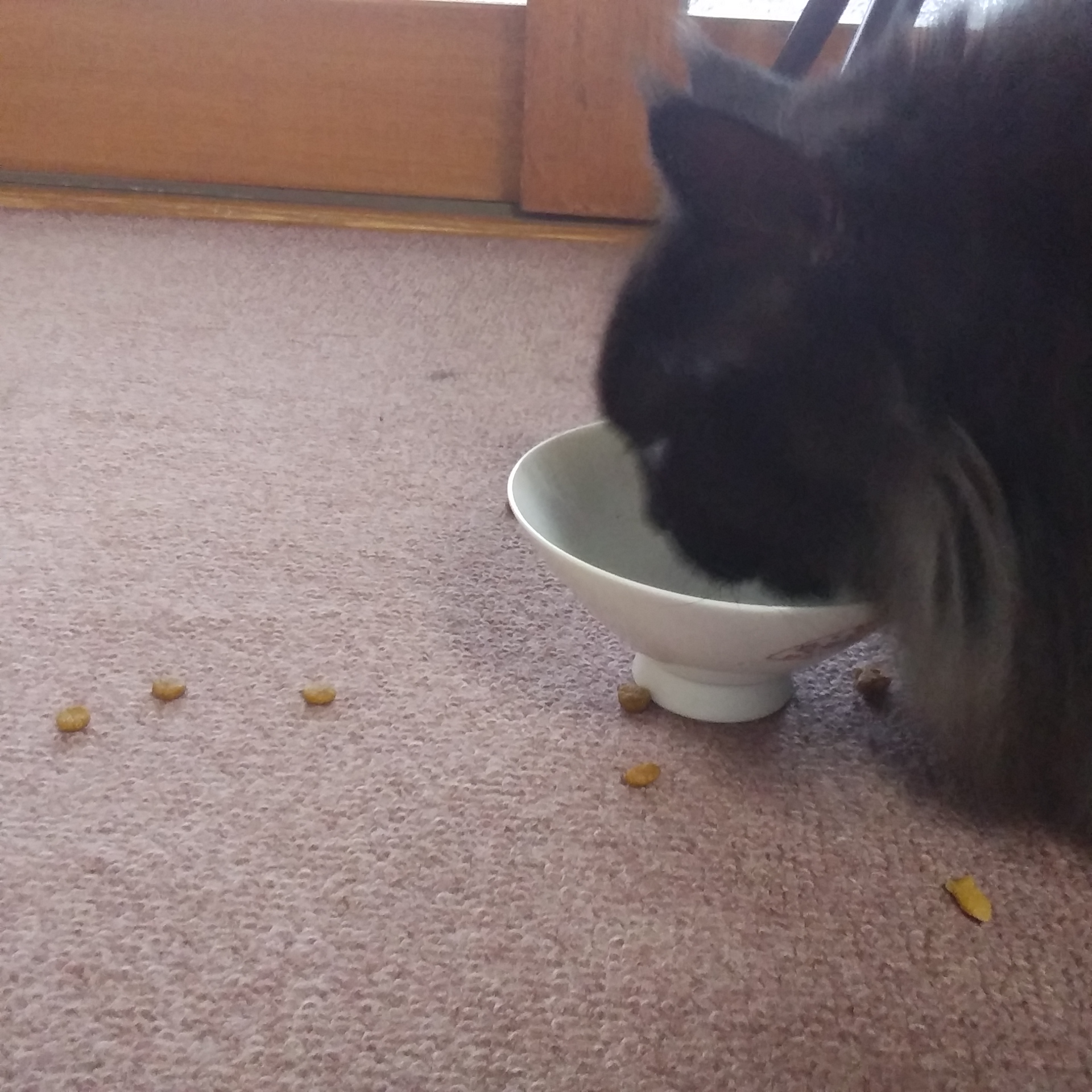M3号のごはんお食べ方はひどい。食べてるかこぼしているかわかりません。そういう私M1号もそうなってきました。M3号にはそろそろ猫年齢で年齢も追い抜かされているかもしれません。