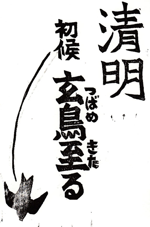 今は二十四節気の清明 の初候にあたる七十二候の”玄鳥至る”時期だそうです。