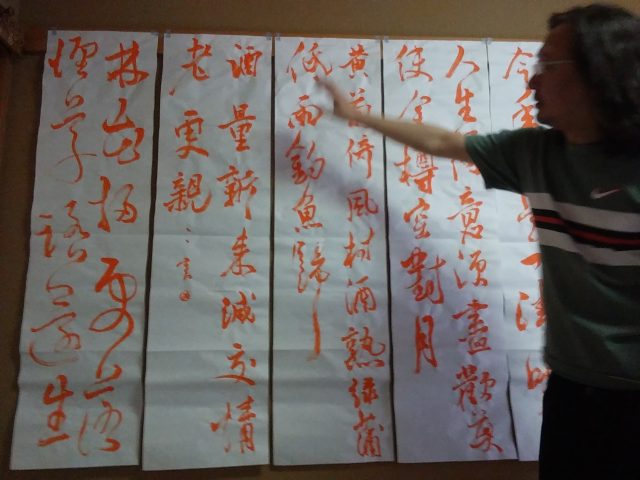 なかなか思うように筆が運ばず、書いても書いても納得いかず。後半はお酒をのみながら。