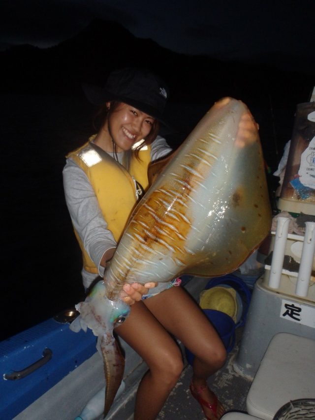 彼女が持っているのは、アオリイカだそうです。デカー