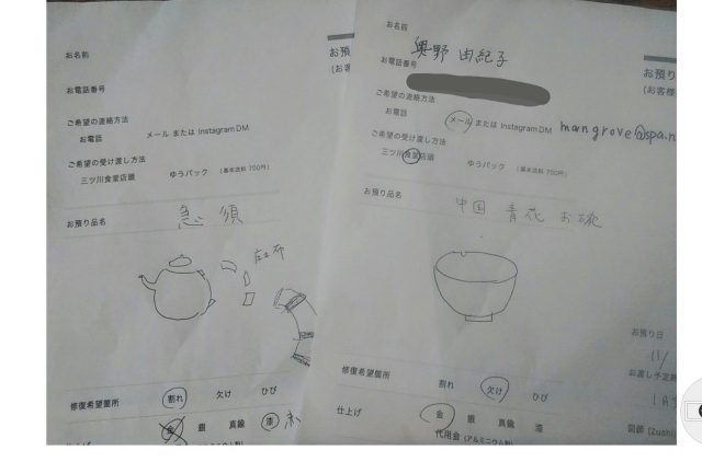 茶碗たちのお直しをお願いしました❗みえこ母から頂いた夫婦茶碗でM1号さんが洗い物してる時に欠けてしまったもの