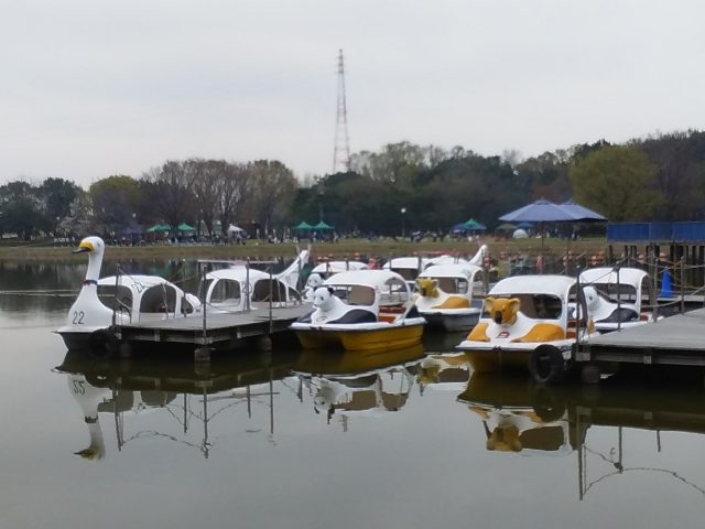庄内緑地公園の遊技ボートの様子。コアラ パンダ ヘリコプターという不思議アイテム。