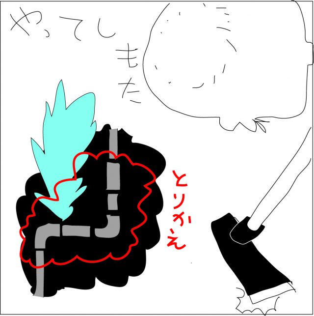 連休なので業者さんは休みだろうし水道の元栓を切ってコトブキさんに電話をして、修理の仕方を聞きました。