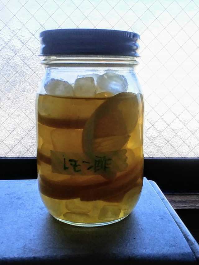 氷砂糖とフルーツを瓶につめて酢を入れて終わり分量は適当(笑)