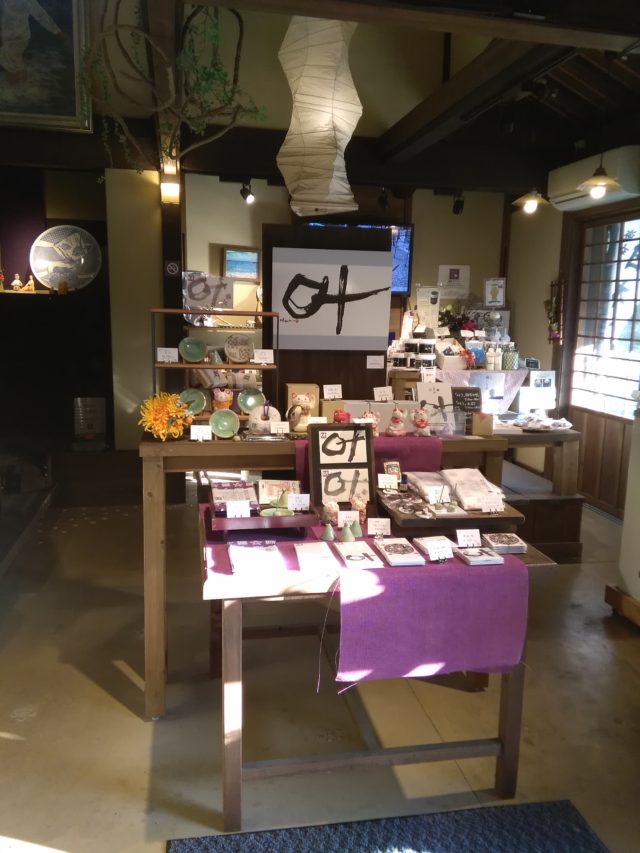 叶うをテーマにこの店のために作られた手作りの商品のコーナーです。豆皿、人形、書、ポチ袋、手拭などですがこれからもっといろいろな商品を開発していく予定です。
