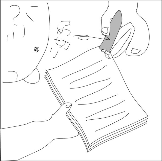 思わず爪切りで書類を止めようとして、自分で”いいギャグや”と満足していました。