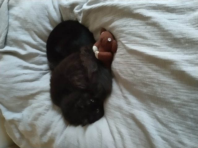 M3号は寒さ知らずなので、普段はよくケンカするのに冬はコバンザメのようにくっつっきます。