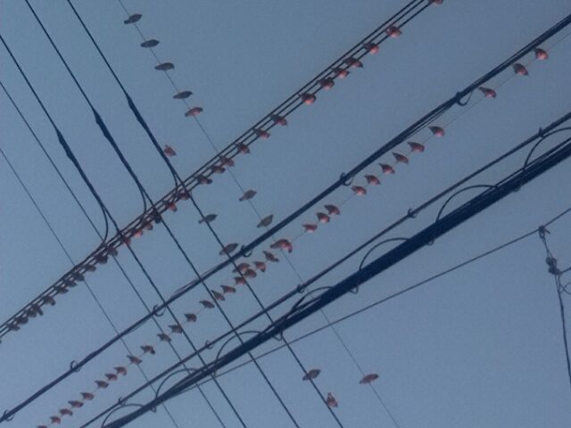 最近近所でムクドリが集会をしています。家の前でなくてよかった。