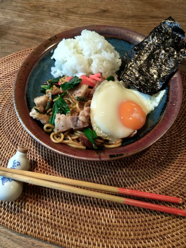 この日はつくし入り 焼きそばに目玉焼きは外せません(M2)