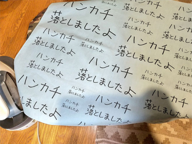 友人からM1号さんへといただいたハンカチ 彼はコレとても気に入って使っています
