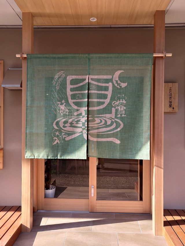 夏至になりました ことほぎ茶屋さんの暖簾も夏仕様に変わりました