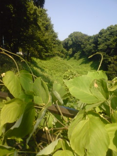 写真を撮ろうとしたら、昔お堀だったところに夏草が生えてこんなになっていました。