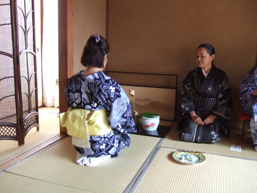 今回は気軽な茶事ということで、皆さん浴衣で出演。正客であるアメリカ人のJKさんも浴衣に着替えての参加です。
