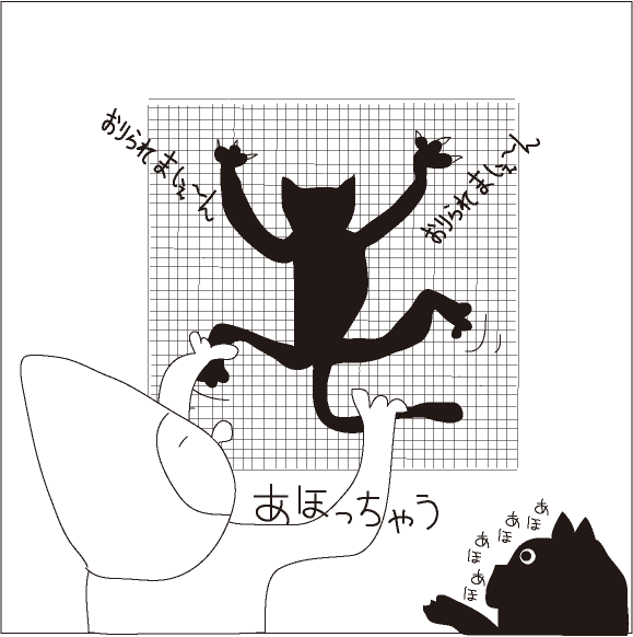 いったいどうしたものかと眺めていたら、網戸に爪がはさまってとれないと文句をいっている(らしい)。