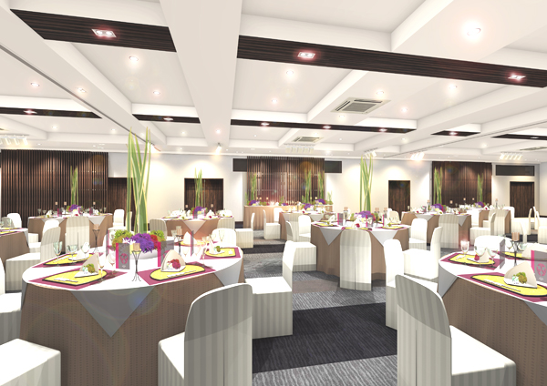 披露宴会場というのは、内装は比較的簡単なのですが、部屋を可動間仕切り壁で仕切るので、照明設計天井の形状を決めるのが大変でした。あと音響の勉強もしないといけないと感じました。Y建築設計事務所に結婚式場の音響・照明に詳しい方を紹介していただいたので、今後このような物件が出ても対応できるようになりました。
