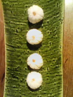 その次が小菊 大和芋を蒸して、裏ごしして味付けして形をつくります。手作業が楽しいです。そして垂井の柚子