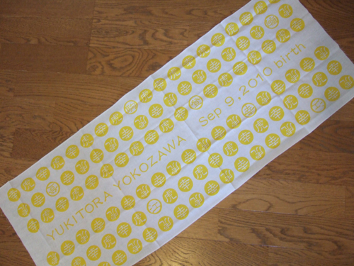 名入れした手拭いをご自分で作ったそうでして。内祝いに頂きました。うれしいな~ありがとうございます~。
